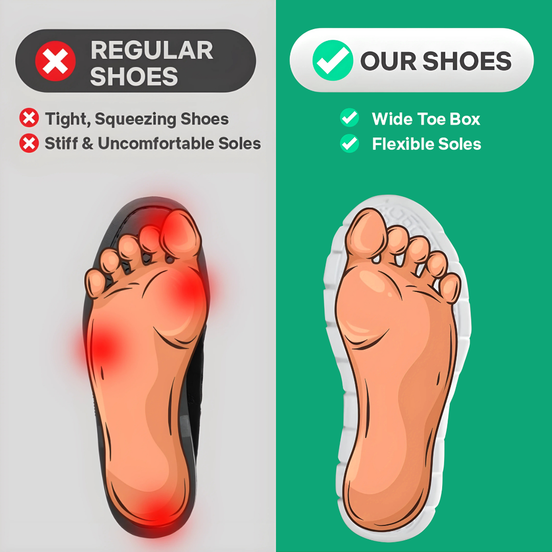 Frama Store's Ultra Comfortable Orthopedic Shoes are here to change that. With a wide toe box and superior orthopedic support, our shoes strike the perfect balance between style and comfort. No more foot pain—experience unmatched comfort all day long.